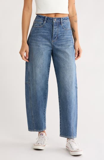 Enjoy the casual-chic look of these roomy, relaxed jeans made with a high waist and curved legs that taper to cropped, trouser-style hems.