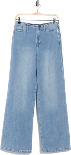 Made from soft nonstretch twill, these faded jeans feature a bandless waist and full-length wide legs for a casual, contemporary look.