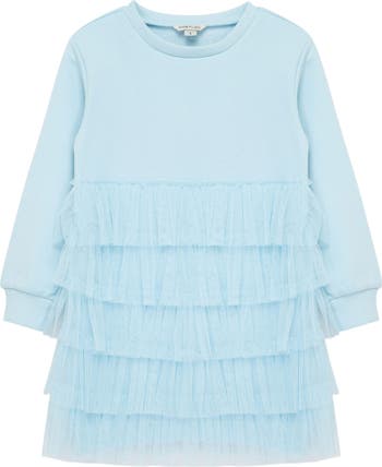 Frilly ruffles bring glam flair to this cozy cotton-blend sweatshirt-dress that's sure to have your kiddo twirling around.