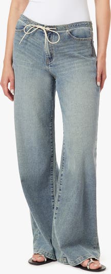 An adjustable drawstring emphasizes the laid-back vibe of wide-leg jeans complete with faded thighs and whiskered details for a classic look and feel.