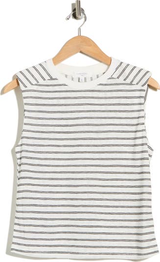 This crewneck tank features padded shoulders and horizontal stripes for a structured take on a classic silhouette.