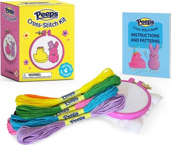 This all-in-one kit includes everything you need to create miniature embroidered cross-stitch crafts of the iconic Peeps' bunny and chick.