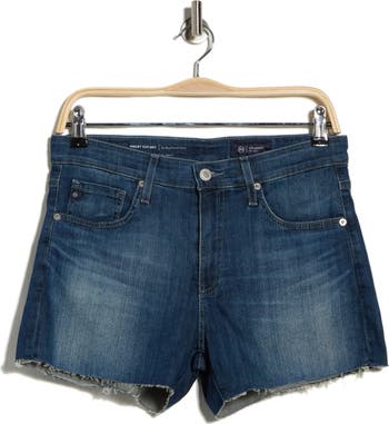 Raw hems further the lived-in vibes of whiskered and faded denim shorts cut in an easy boyfriend silhouette.