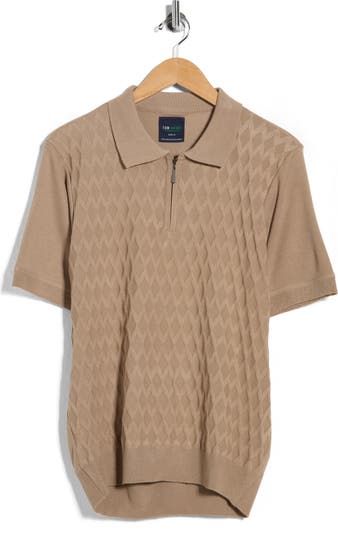 A fresh take on a cool classic, this knit polo sweater is defined by its diamond pattern and a sleek half-zip closure.
