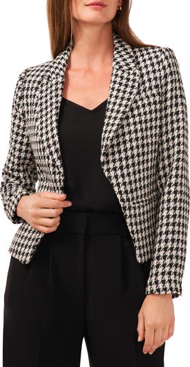 A collegiate-inspired houndstooth pattern and cropped silhouette lend stylish charm to a polished blazer that will elevate your poised ensemble.
