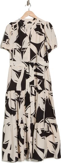 Large-scale blooms sweetly pattern a lightweight woven maxi dress that's snatched at the waist by a coordinating tie.
