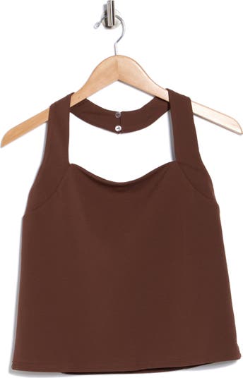 Refresh your sunny-day style with this square-neck halter tank cut in a flirty cropped silhouette.