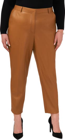 Sleek faux leather elevates these polished trousers punctuated with straight legs for versatile wear.