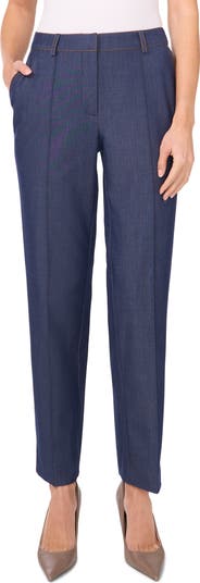 Bring denim day vibes to the office in these topstitched pants painted in an indigo hue and centered with a pintuck pleat.