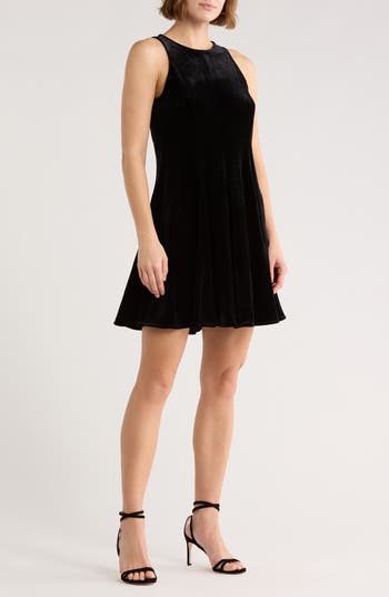 Perfect for your next special occasion, this stretchy velour A-line is fashioned with a mock neckline and sleeveless silhouette.