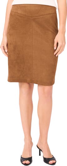 Waistband Seam Detail Faux Suede Midi Skirt