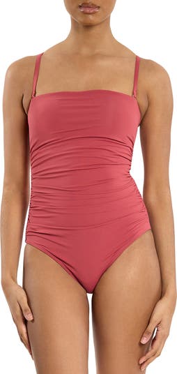 Tell tanlines to move along in a strapless swimsuit shaped with rows of ruching and made from a feel-good fabric.