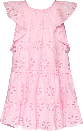 They'll adore the fluttery ruffles that accentuate this tiered cotton sundress, beautifully patterned with tonal embroidery.