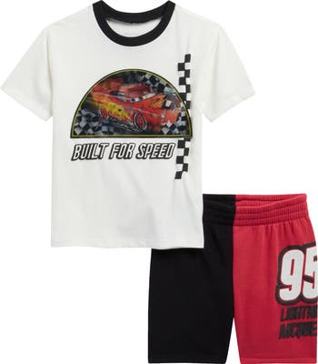 Your active little one can channel the speed and adrenaline of the racetrack with this Pixar 'Cars'-themed set featuring a cotton-blend graphic T-shirt and a pair of coordinating colorblocked fleece shorts.