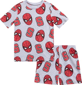 Playtime gets a heroic upgrade with this jersey T-shirt and shorts set covered in an allover Spider-Man print.