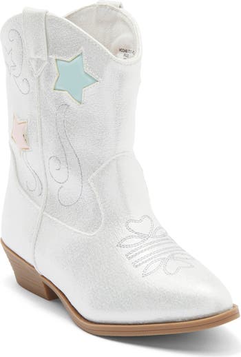 Colorful cutout stars and Western-style stitching give kid-approved flair to a charming cowboy boot.