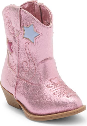 Colorful cutout stars and Western-style stitching give kid-approved flair to a charming cowboy boot.