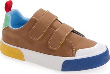 A assortment of bold colors and easily-adjustable hook-and-loop straps bring a kid-friendly finish to this versatile faux-leather sneaker.