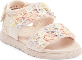 Dainty 3D flowers add a delightful touch to this cushy kids' sandal, set on a chunky lug grip sole for a playground-perfect finish.
