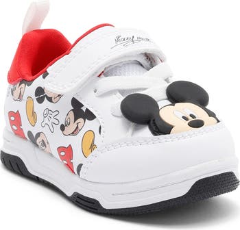 Add some Disney magic to their look with this lace-up sneaker featuring an allover print and three-dimensional Mickey head.