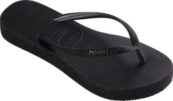 Get the beach party started in this classic flip-flop updated with a sparkling platform and glitter-encrusted straps.