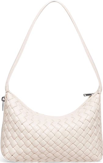 Carry your essentials in an elegantly woven leather shoulder bag fashioned with a fixed strap and secure top-zip closure.