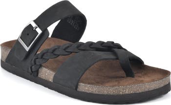 The Hazy multi-strap sandal by White Mountain Footbeds(TM) is a unique addition to our footbed Collection. Our signature contoured footbed with heel cup provides ultimate comfort to wear all day. The beautiful braided detail, toe loop, and adjustable buckle secure your foot with style.