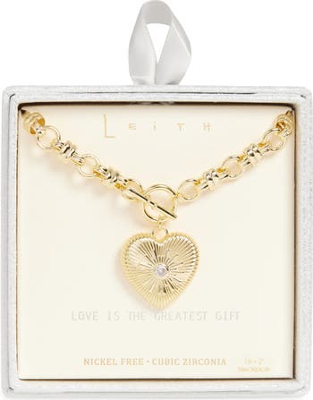Give your look a gleaming finish with a statement-making pendant necklace surrounded with sparkling CZ stones and a chunky toggle chain necklace.