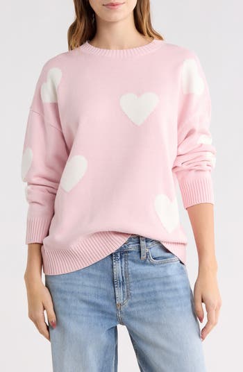 Stylish hearts add a fun feel to this cozy knit sweater framed with a classic crewneck.