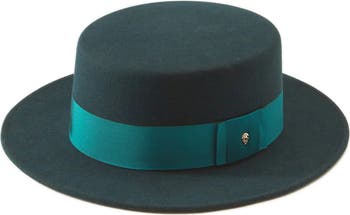 A wide grosgrain ribbon emphasizes the structured appearance of a wool felt hat designed with an interior band that adjusts to your perfect fit.