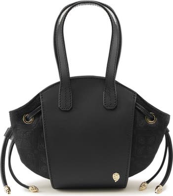 Jacquard logo knit trims the sides of this scaled-down leather tote bag with a chic fanned-out silhouette.