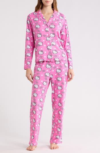 Bring Sanrio sweetness to your bedtime routine with these soft and stretchy pajamas featuring a long-sleeved button-up and matching straight-leg pants.
