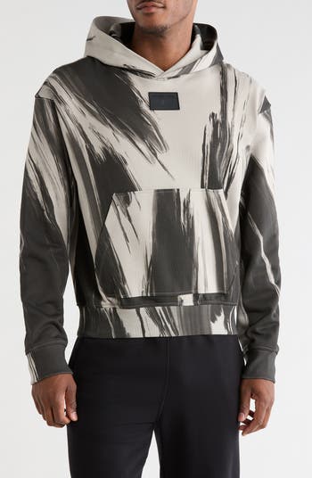 An abstract print brings contemporary style to this slouchy pullover hoodie cut from comfortable cotton French terry.