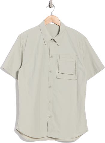 A layered pocket brings modern dimension to this short-sleeve button-up shirt cut from lightweight nylon for sporty style.
