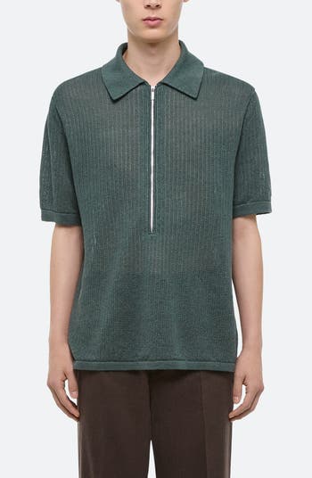 A half-zip placket lends a sporty feel to this airy linen polo knit with textural stitches and a relaxed fit.