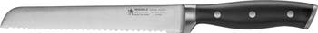 This 8-inch, serrated bread knife glides effortlessly through hearty loaves, tomatoes, and other tough-skinned foods while minimizing tearing or crushing. A forged bolster ensures balance and control, while the curved, triple-riveted handle delivers comfort and stability with every slice.