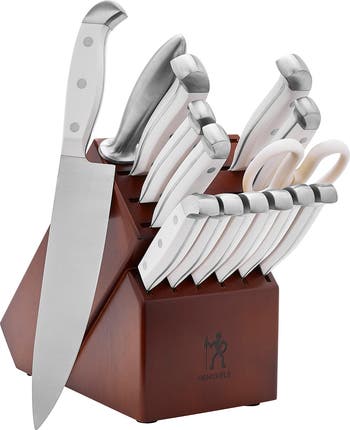 This knife set was a gift and I LOVE it. I don't think you realize how dull your knives are until you get a sharp one! The white handles are gorgeous and look great in my kitchen
