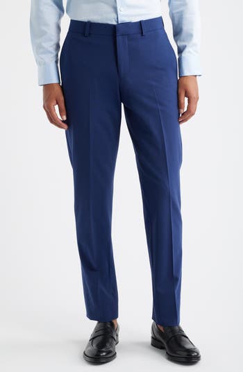 Smart and versatile, these flat-front suit pants tailored from stretch-enhanced wool sit just below the waist and taper down the legs to bring a modern finish to any formal or semiformal look. Crisp creases and a concealed closure complement the handsomely streamlined profile.
