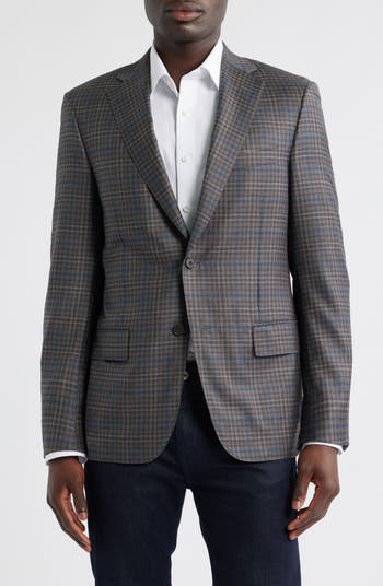 Subtly textured Italian wool patterned in a check of browns and blues makes an all-season favorite of a sport coat with soft tailoring in the shoulders and a lightly fitted waist. Perfect for daytime and evening events, it makes a smart complement to any semiformal look.