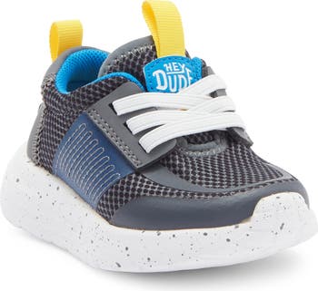 Stretchy, no-tie laces keep your kiddo's foot secure as they conquer the playground on this cushioned sneaker grounded on a lightweight yet flexible sole.