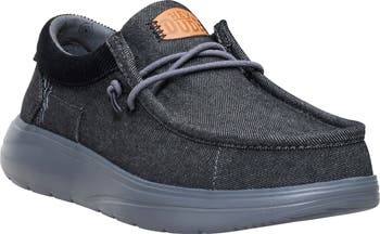 A lightwight, flexible sole grounds this sporty slip-on crafted from durable canvas with a padded faux-suede collar and memory foam insole for all-day comfort.