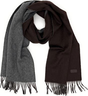 Fluttery fringe trims this cozy double-faced scarf crafted from brushed merino wool yarn.