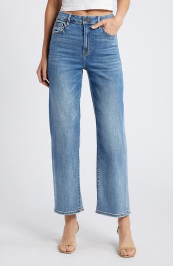 Rock retro style in these kicky wide-leg jeans fashioned from stretch-kissed denim in a classic faded finish.