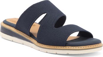 A mesh construction and side cutouts enhance the breezy appeal of this staple slide sandal.