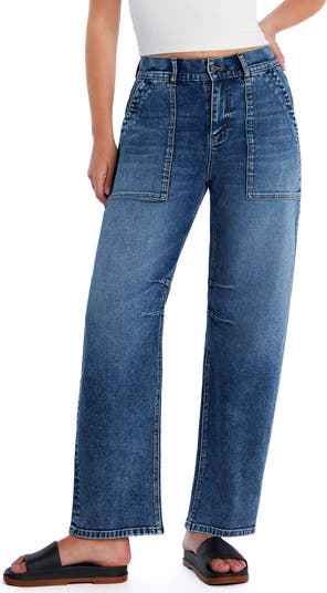 Relaxed barrel legs curve out at the knees to give these utility-inspired jeans cut from low-stretch denim a trend-right edge.