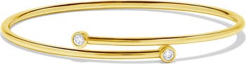 Perfect to stack or wear solo, this flexible bypass bracelet is crafted from glossy 14-karat gold with bezel-set diamond caps for luxurious sparkle.