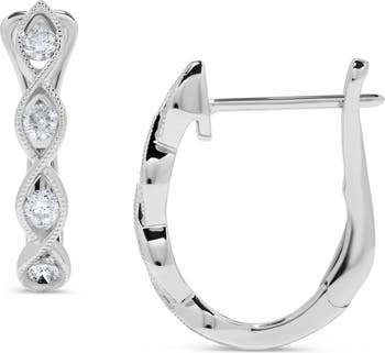14K White Gold Diamond Milgrain Huggie Hoop Earrings