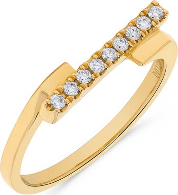 Sparkly prong-set round diamonds center this stackable layered-bar ring crafted from polished 14-karat yellow gold.
