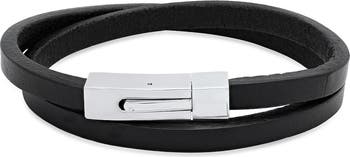 Add a sleek touch to your everyday outfit with this leather bracelet featuring a stainless steel clasp.