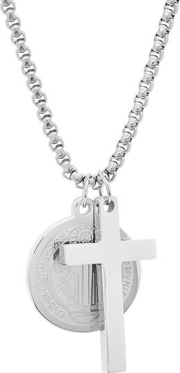 Men's Stainless Steel Cross & Saint Pendant Necklace
